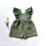 the overall green jumper with shorts at the bottom, made in very soft linen fabric.