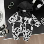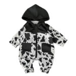 Baby boy leopard print hooded one-piece windproof western style romper.